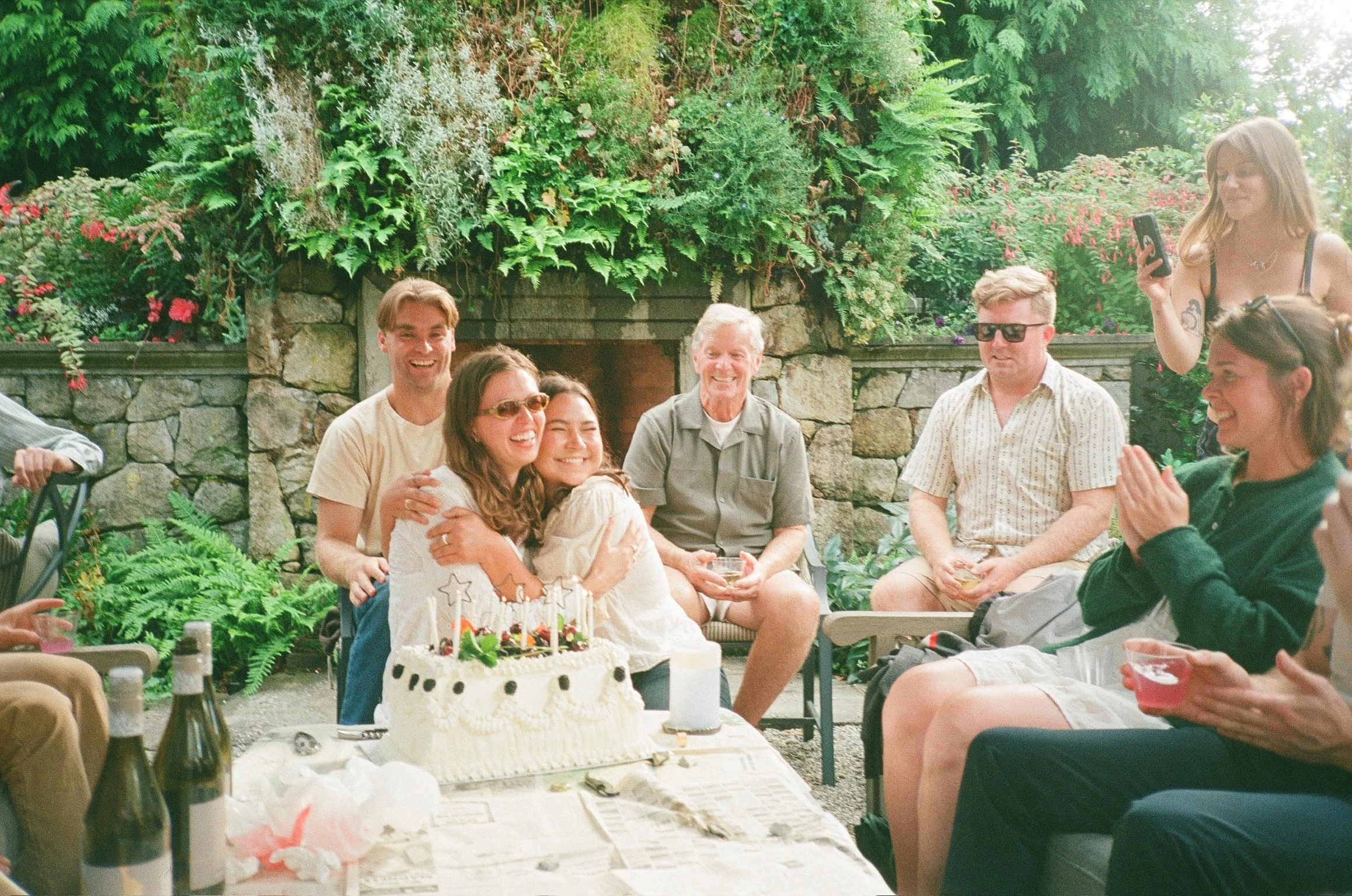 Gluten free lemon olive oil cake with blackberry filling, vanilla Italian meringue buttercream, blackberries, cherries, nasturtiums, chamomile, and strawberry vines